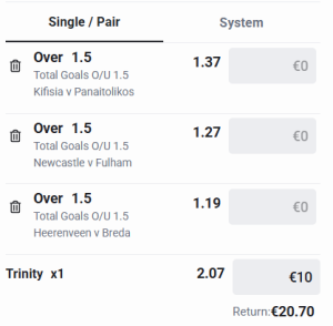 In this page, we offer real soccer tips to simulate the software and evaluate our choices on “2 of 6 bets” system.