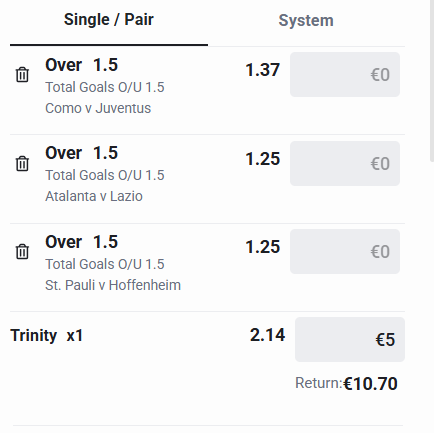 2 of 6 bets 19-10-25 (LOST) Each of our choices has almost more than 88% probability. All 3 have 0,99 x 0,88 x 0,88 = 0,68 (77% probability) 1, 2, 4, 6, 8, 12.5 We won, so we start from the beginning. Post navigation Draw No Bet 18-10-25 (LOST)