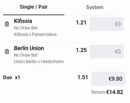 One Winning – One Refund (Total Odd: 1.21 or 1.25)